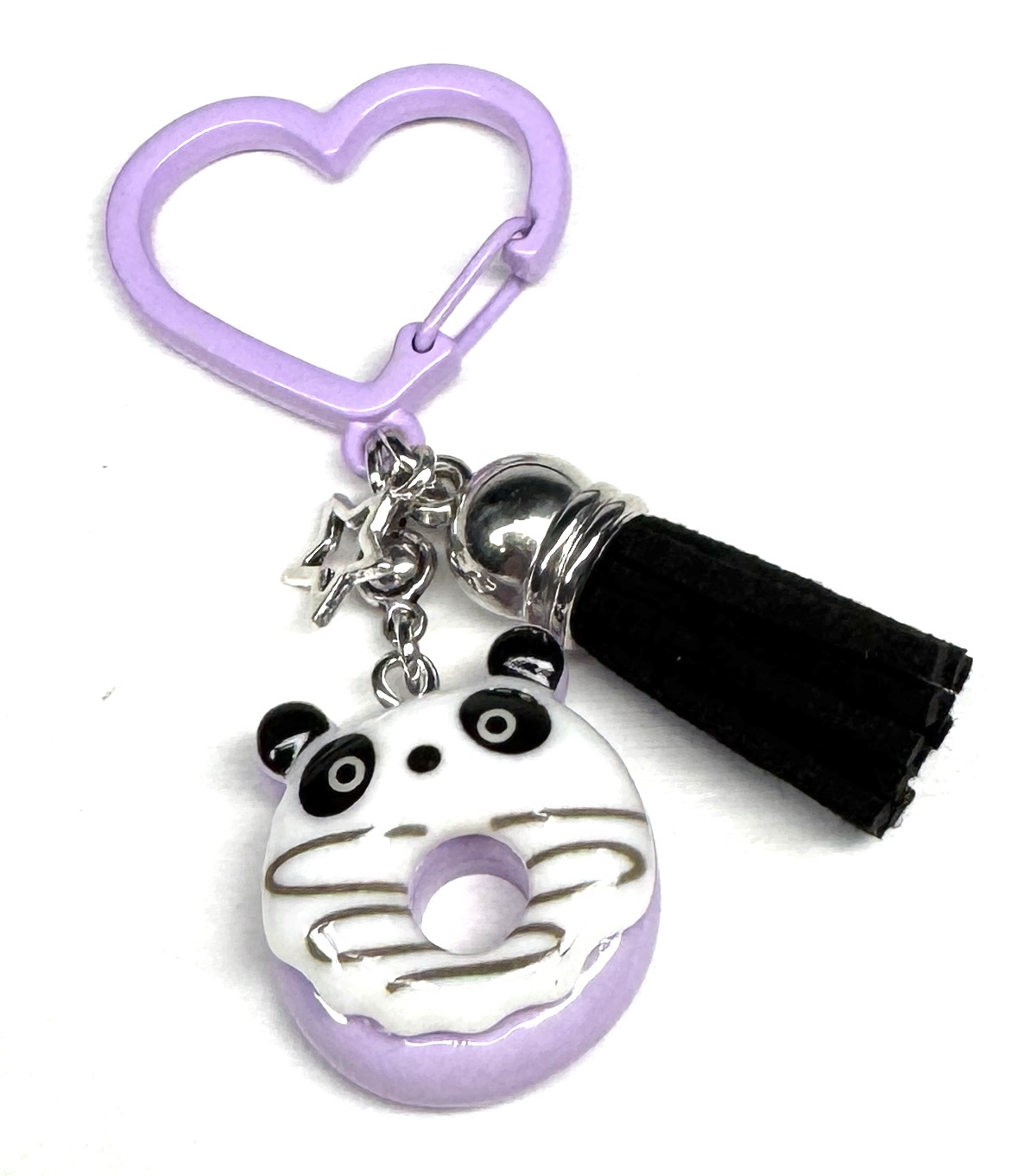 Kleiner Anhänger für alle Junggebliebenen mit herzförmigem Karabiner, Sternchen, Quaste und niedlichem Donut. Verschönert jede Tasche. 😉