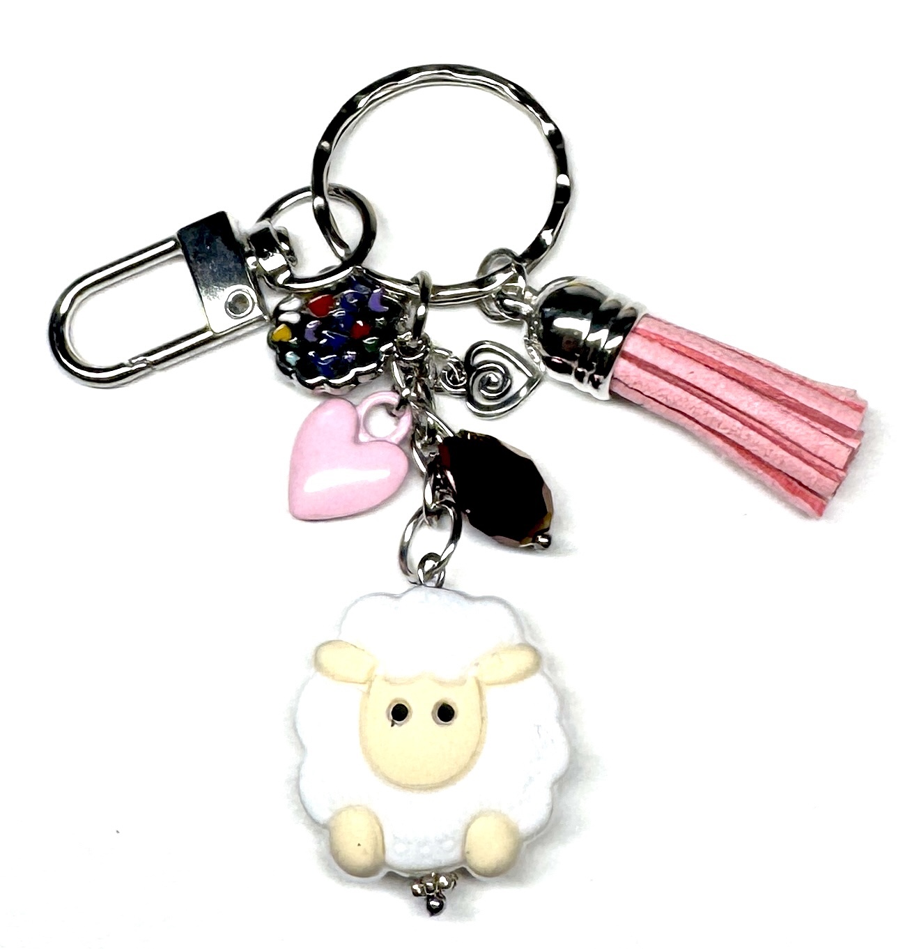 Schlüsselanhänger mit Anhänger aus Silikon (beidseitiges Motiv), Glasperlen, Herz-Charmes, emailliertem Anhänger, Karabiner und Kunstlederanhänger.
