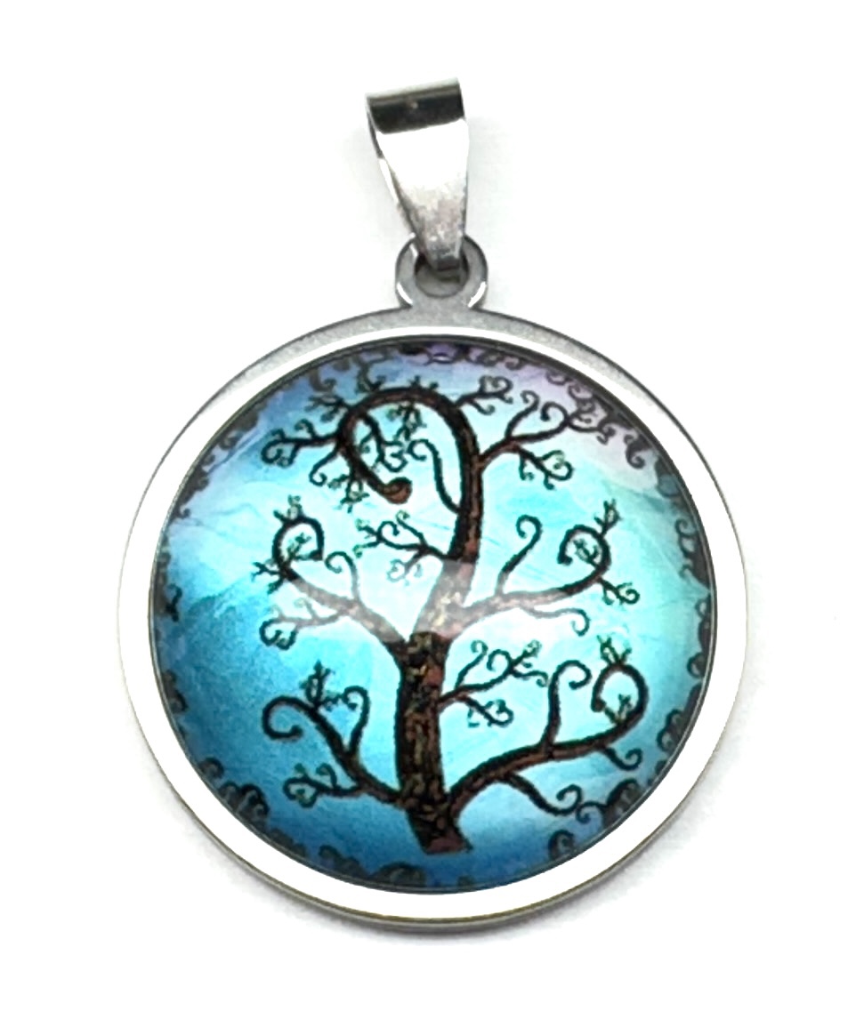 Anhänger aus stabilem Edelstahlrahmen und Glas-Cabochon.