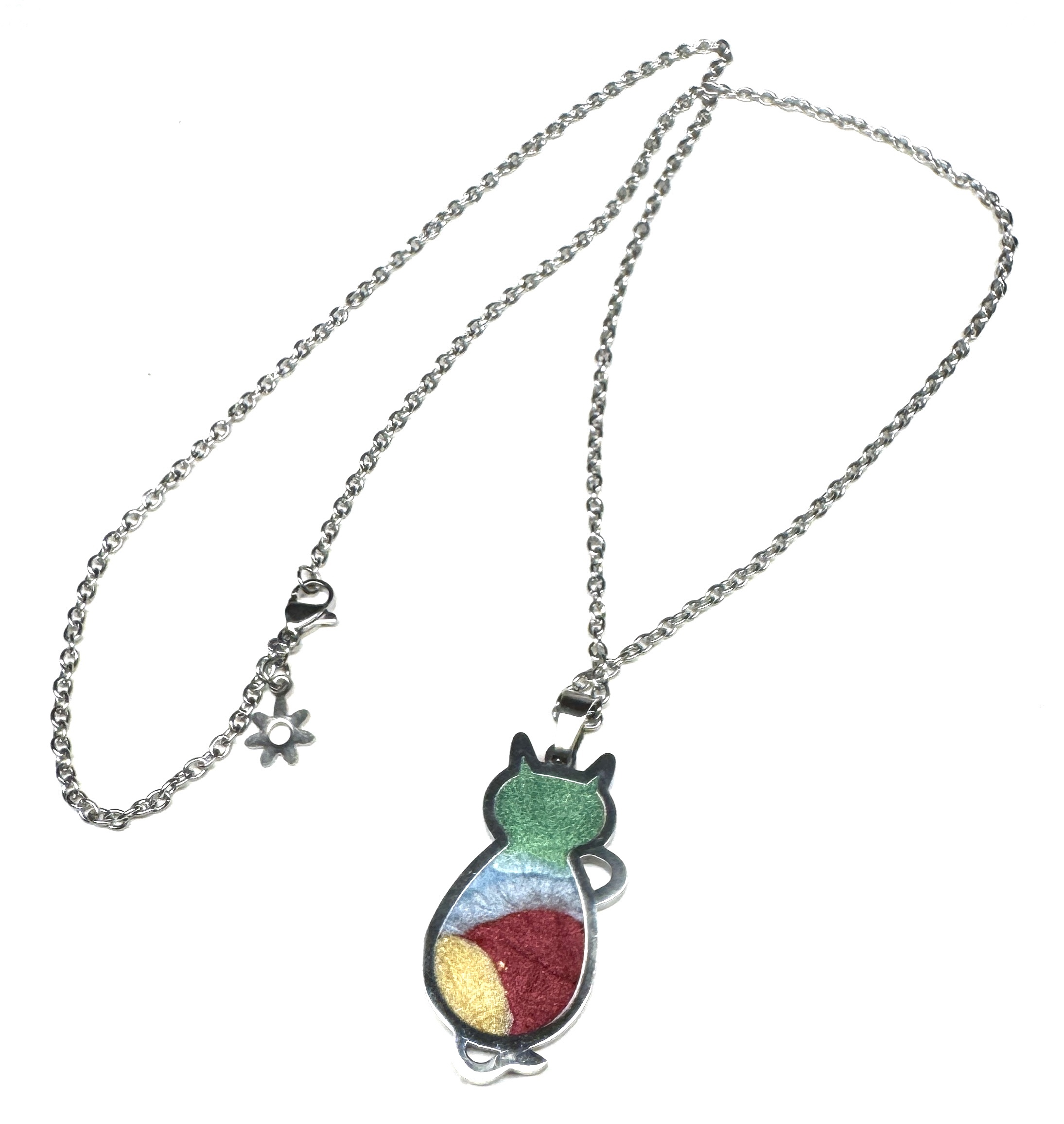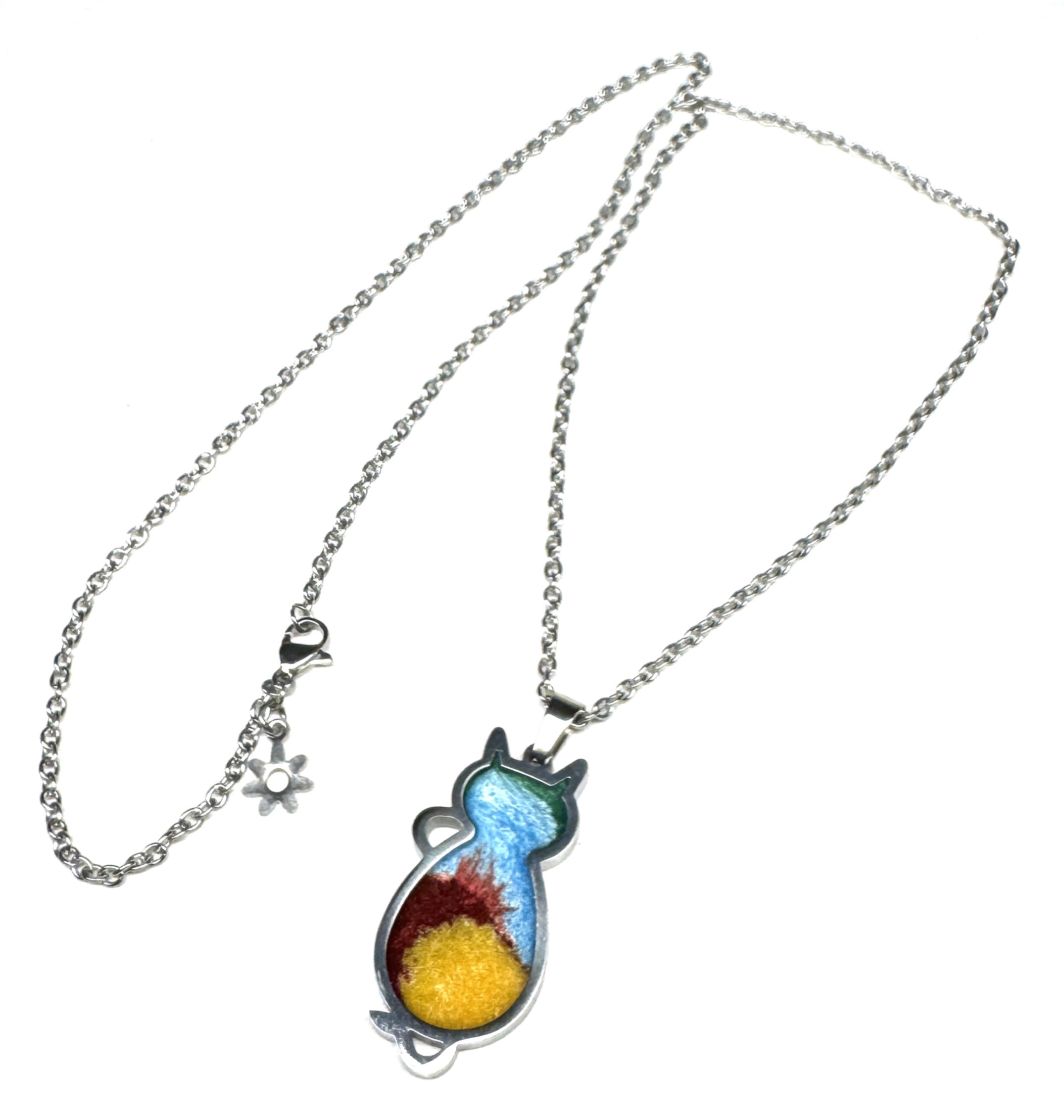 Halskette aus Edelstahl mit selbst gegossenem Anhänger aus Resin (Epoxidharz) und Mica-Pulver im Edelstahlrahmen.