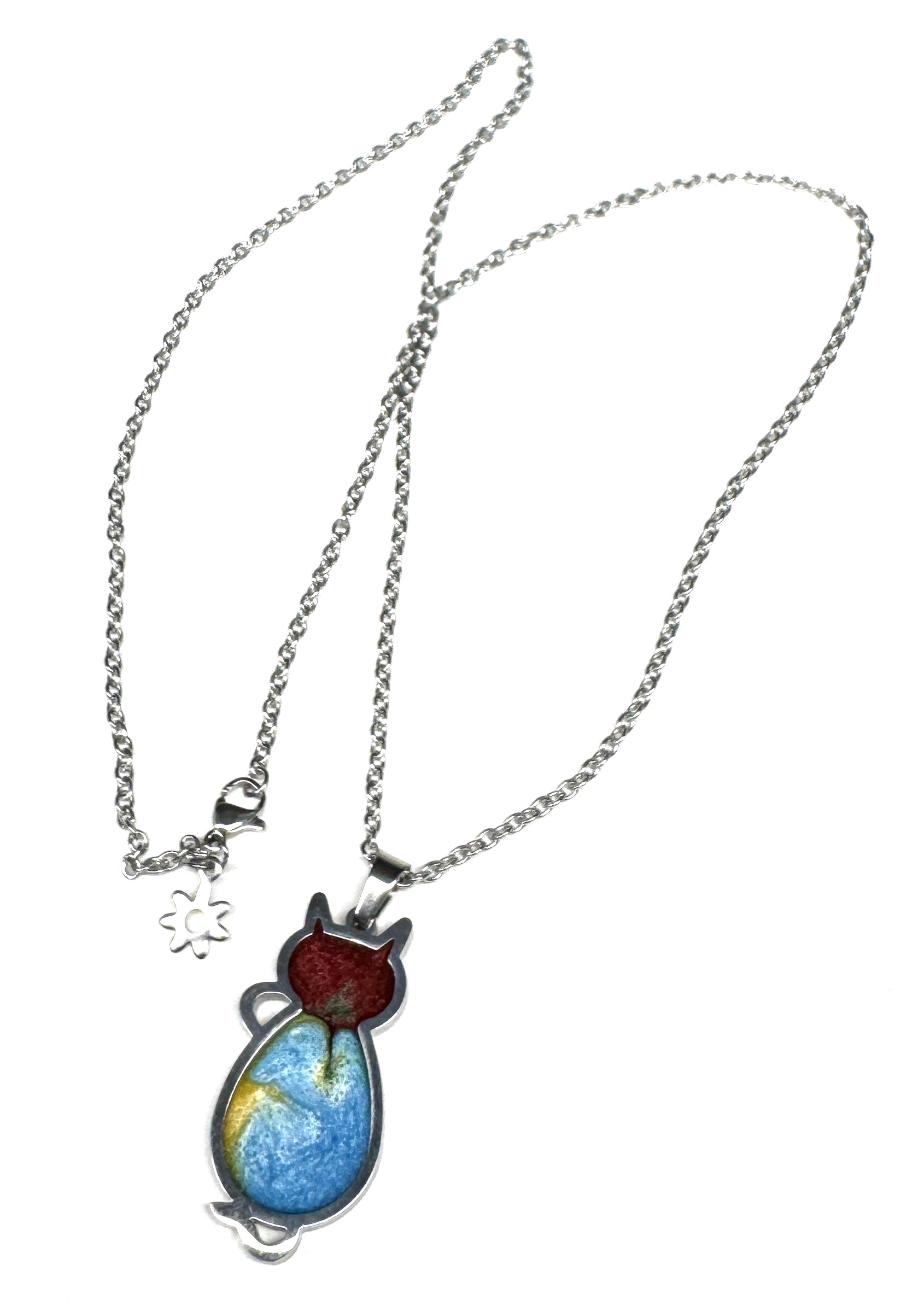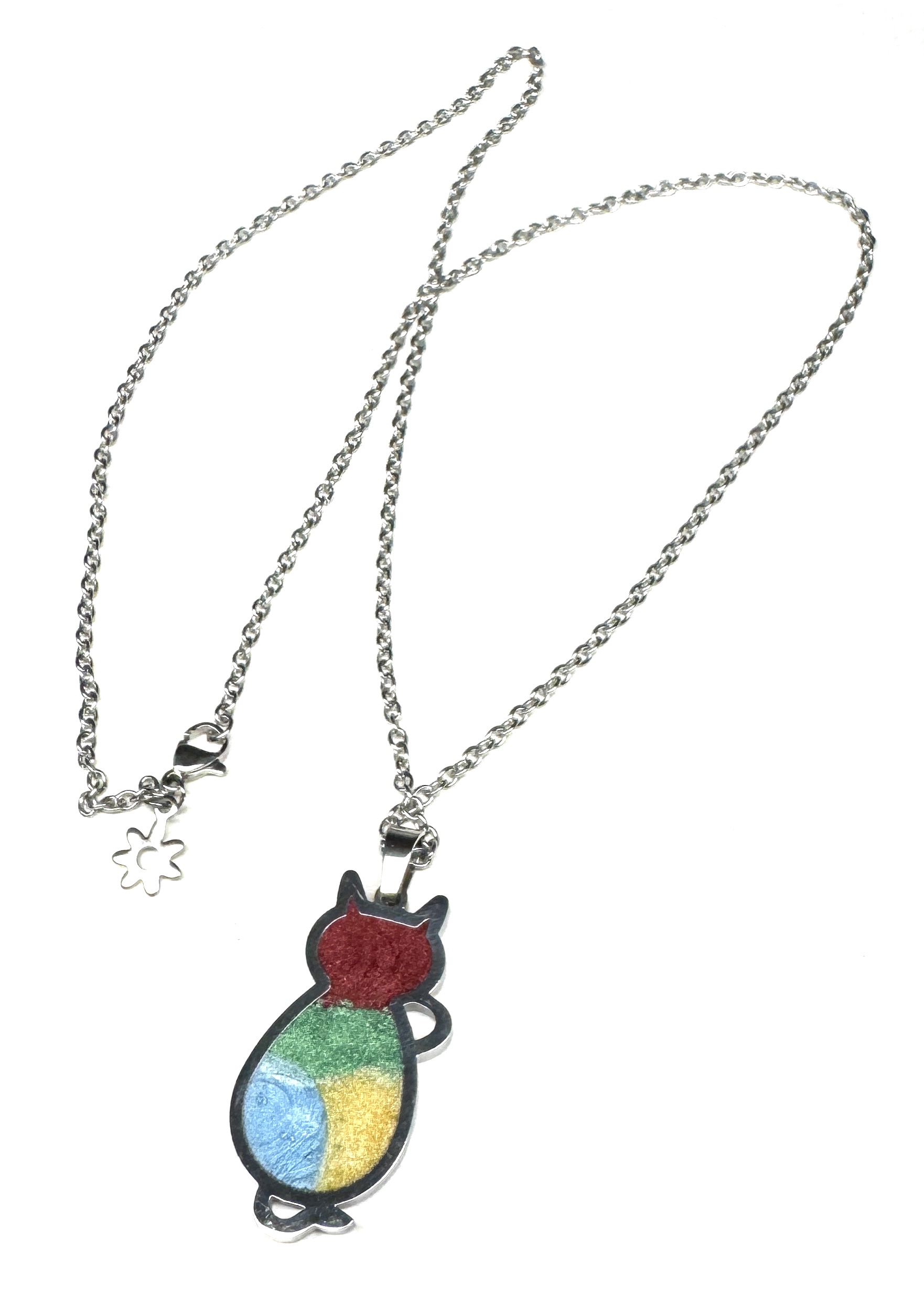 Halskette aus Edelstahl mit selbst gegossenem Anhänger aus Resin (Epoxidharz) und Mica-Pulver im Edelstahlrahmen.