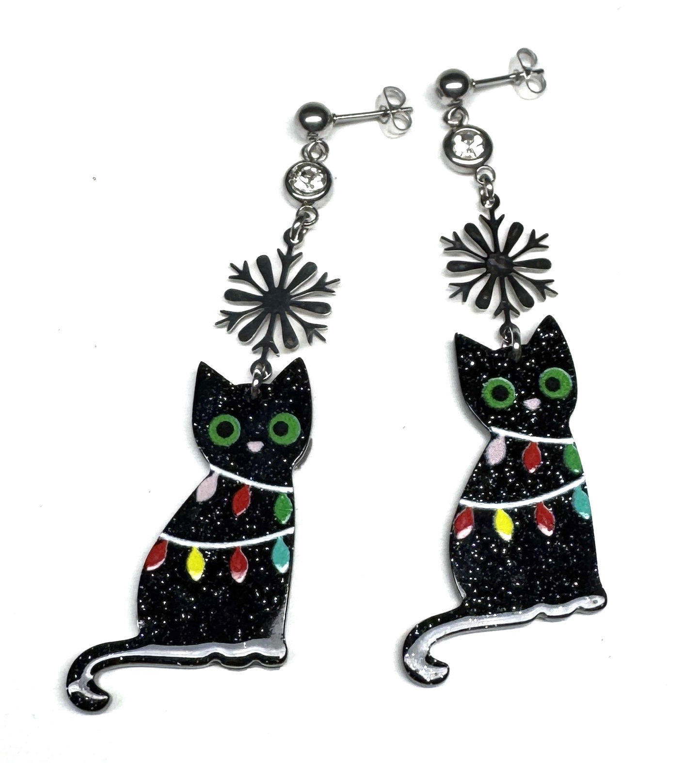 Ohrringe mit Acrylanhänger, Schneeflocke und Strass-Verteiler aus Edelstahl. Ohrmutterverschluss.