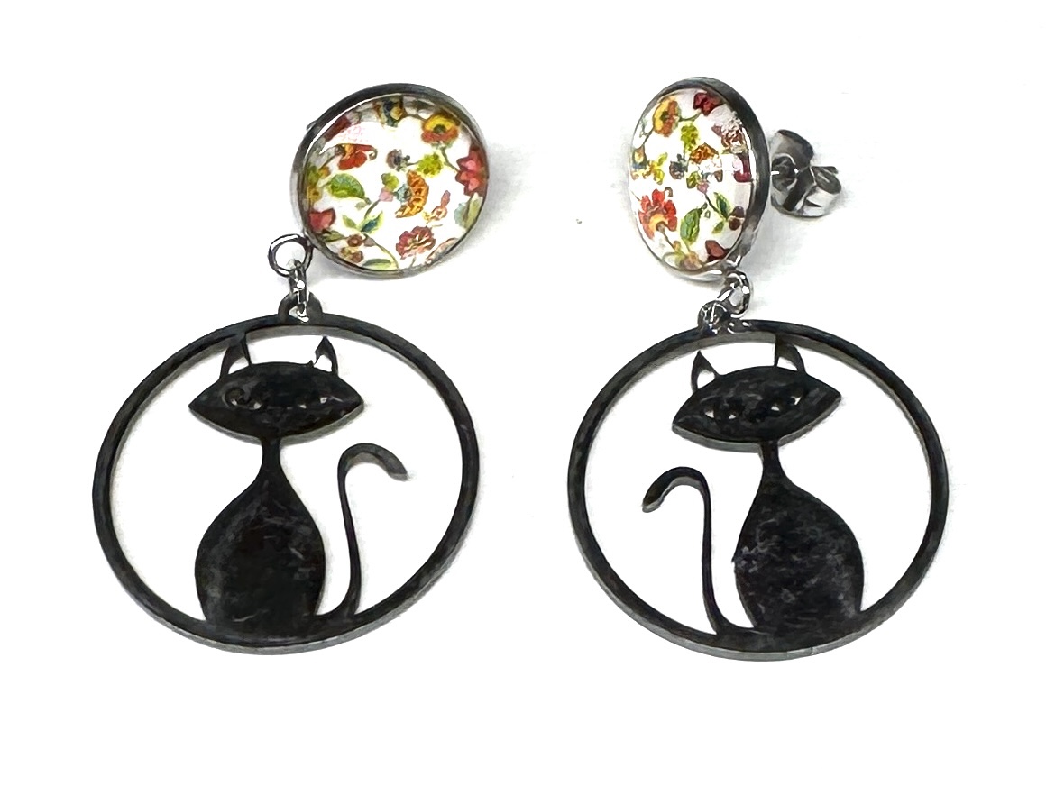 Ohrstecker aus Edelstahl mit Glas-Cabochon und Edelstahlanhänger. Ohrmutterverschluss.