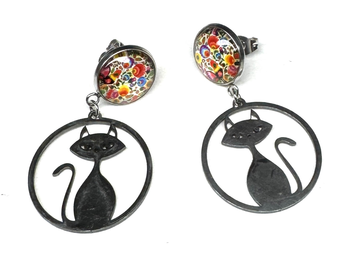 Ohrstecker aus Edelstahl mit Glas-Cabochon und Edelstahlanhänger. Ohrmutterverschluss.