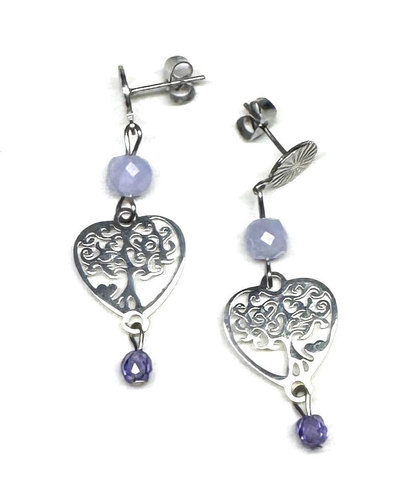 Ohrringe mit gefärbten, facettierten Quarzperlen, funkelnden Zirkoniaperlen und Verbinder aus Edelstahl. Ohrmutterverschluss.