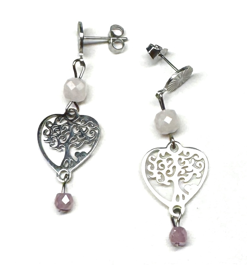Ohrringe mit gefärbten, facettierten Quarzperlen, funkelnden Zirkoniaperlen und Verbinder aus Edelstahl. Ohrmutterverschluss.