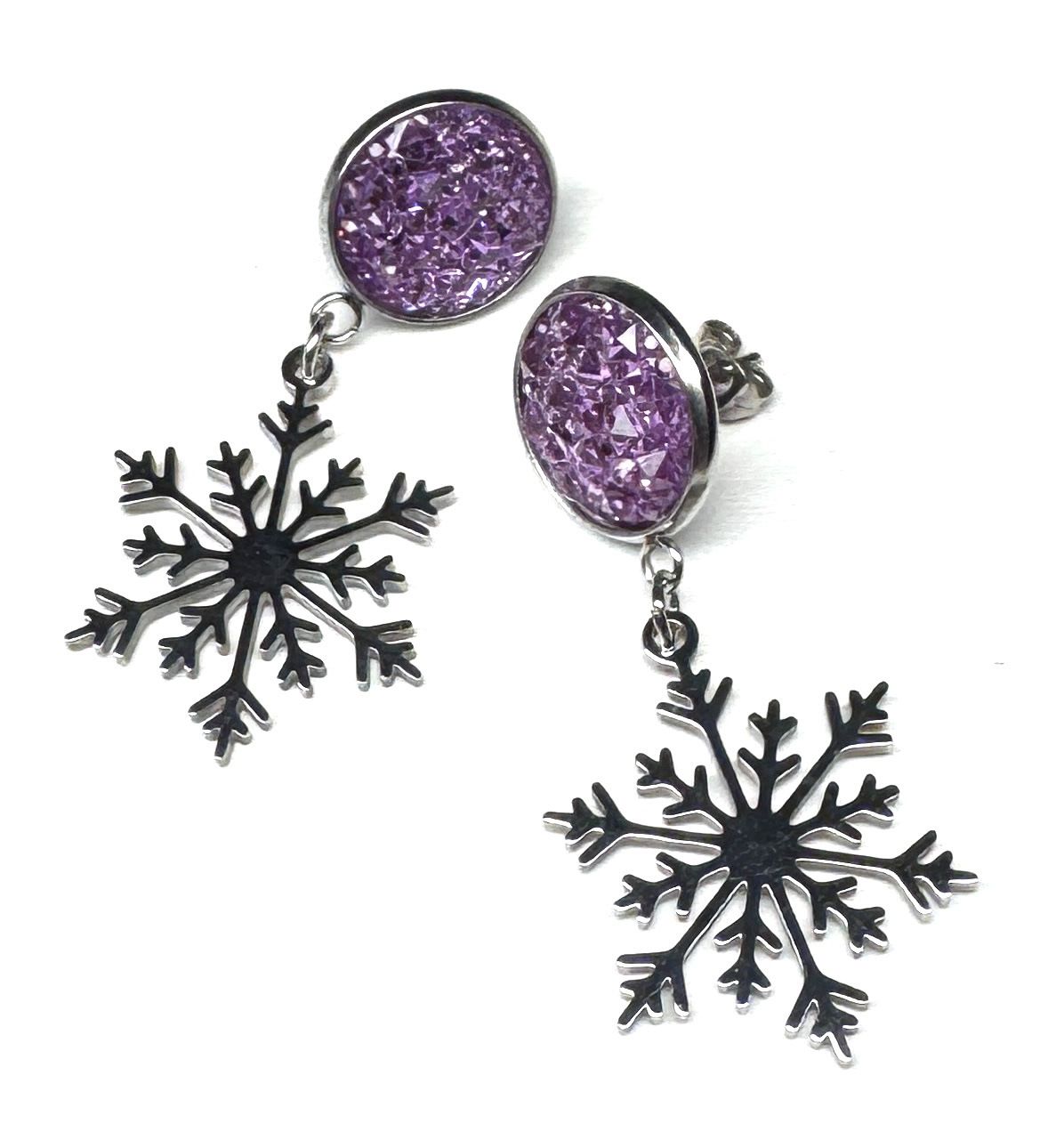 Ohrringe mit Stecker-Fassung aus Edelstahl für den Resin-Cabochon und Motivanhänger aus Edelstahl.